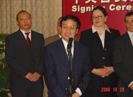 1991安达办公地点迁入新址----天津东丽区外环线张贵庄铁路桥东。(图为:时任东丽区委书记张继光区长王学思参加安达新址落成剪彩仪式))