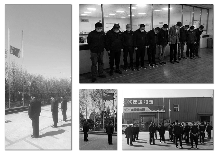 2020年4月3日,国务院办公厅印发《关于为新冠肺炎疫情牺牲烈士和逝世同胞举行全国性哀悼活动的通知》。国务院决定,2020年4月4日举行全国性哀悼活动。在此期间,安达集团及各分公司,响应国家号召,4月4日10时起,在各厂院前广场举行降半旗仪式,共悼逝者,寄托哀思,全体在职人员默哀3分钟。