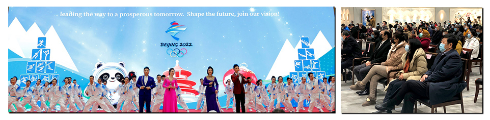 活动在广西戏剧院表演歌舞《连心歌》中拉开帷幕,现场播放了来自芬兰国际友人以及小朋友对北京冬奥的祝福视频;朝鲜著名歌唱家金松美演唱的歌曲《我和我的祖国》,表达了中朝两国人民深厚的传统友谊;著名歌手乌兰图雅演唱的北京2022年冬奥优秀音乐作品《与冰雪共舞》,展现了全民参与冰雪运动、积极支持冬奥的精神风貌;广西戏剧院表演的彩调剧《新刘三姐》,演绎了当代壮乡人对山歌的坚守,对家乡青山绿水的热爱,对美好生活的追求。