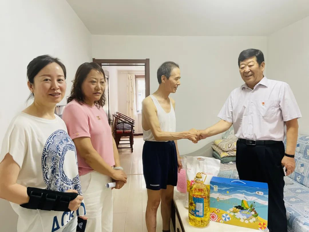 此次走访的困难党员均为退役军人。每到一户,崔洪金董事长都会详细询问困难党员的身体状况和家庭情况,鼓励他们保持乐观平和的心态,懂得放松和自我调试,要对未来生活充满信心。慰问组还为每位退役党员送去了《慰问信》,向他们送上诚挚的节日祝福。此次活动,崔洪金董事长为5户困难党员、退役军人家庭送去了面粉、食用油、防暑大礼包等慰问品,切实增强了党员、退役军人们的政治荣誉感、组织归属感,生活幸福感,让他们切实感受到了社会的关怀和温暖。