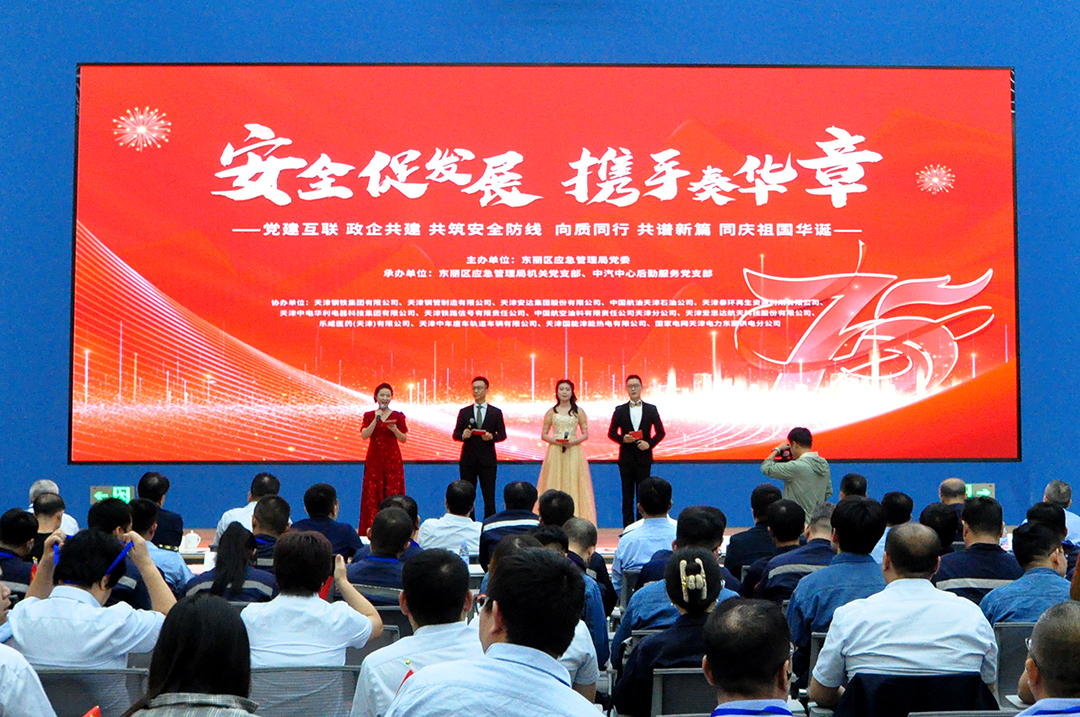 为充分发挥政企多元主体协同共治合力,以党建引领企业安全发展新动能,强化安全意识,共筑安全防线。东丽区应急局党委联合危化、工贸、科创、国企、民营等5方面重点行业领域有影响力、引领性、代表性的13家党建互联共建企业在中国汽车技术研究中心有限公司报告厅,举办“安全促发展 携手奏华章”庆祝新中国成立75周年联欢会活动。各联建企业领导、党员代表、干部职工以及在应急领域众多方面给予关心和指导的相关委办局领导等200余人参加活动。区应急管理局党委书记、局长辛长海同志致辞。安达集团党委书记、董事长崔洪金、安达物流支部书记、总经理郑玉强、安达集团党委办公室主任于忠杰作为特邀嘉宾出席活动。