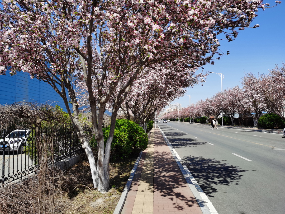 在春意盎然的季节里,位于城市一隅的天津安达物流股份有限公司迎来了它一年中最为绚烂的时节。公司门口道路两旁的海棠次第绽放,粉白相间的花朵如云似霞,随风轻曳的花瓣宛若凝脂,与穿梭其间的蜜蜂共舞,勾勒出一幅生机盎然的春日画卷。这满目繁花不仅装点了城市的风景,更与企业的蓬勃发展形成诗意呼应,成为见证公司“向上生长”的鲜活注脚。